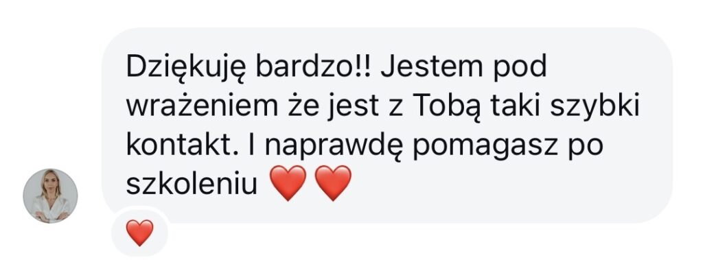 • Możliwość zadawania pytań i pomoc po ukończonym szkoleniu