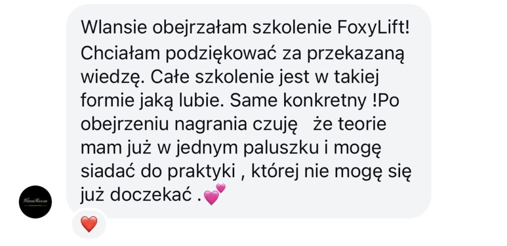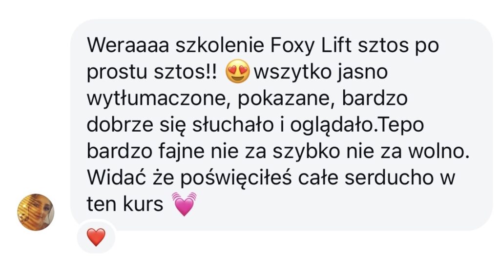 • Otrzymasz 2 certyfikaty 1szy po ukończonym kursie drugi po wysłaniu swoich prac z efektem Foxy Lift